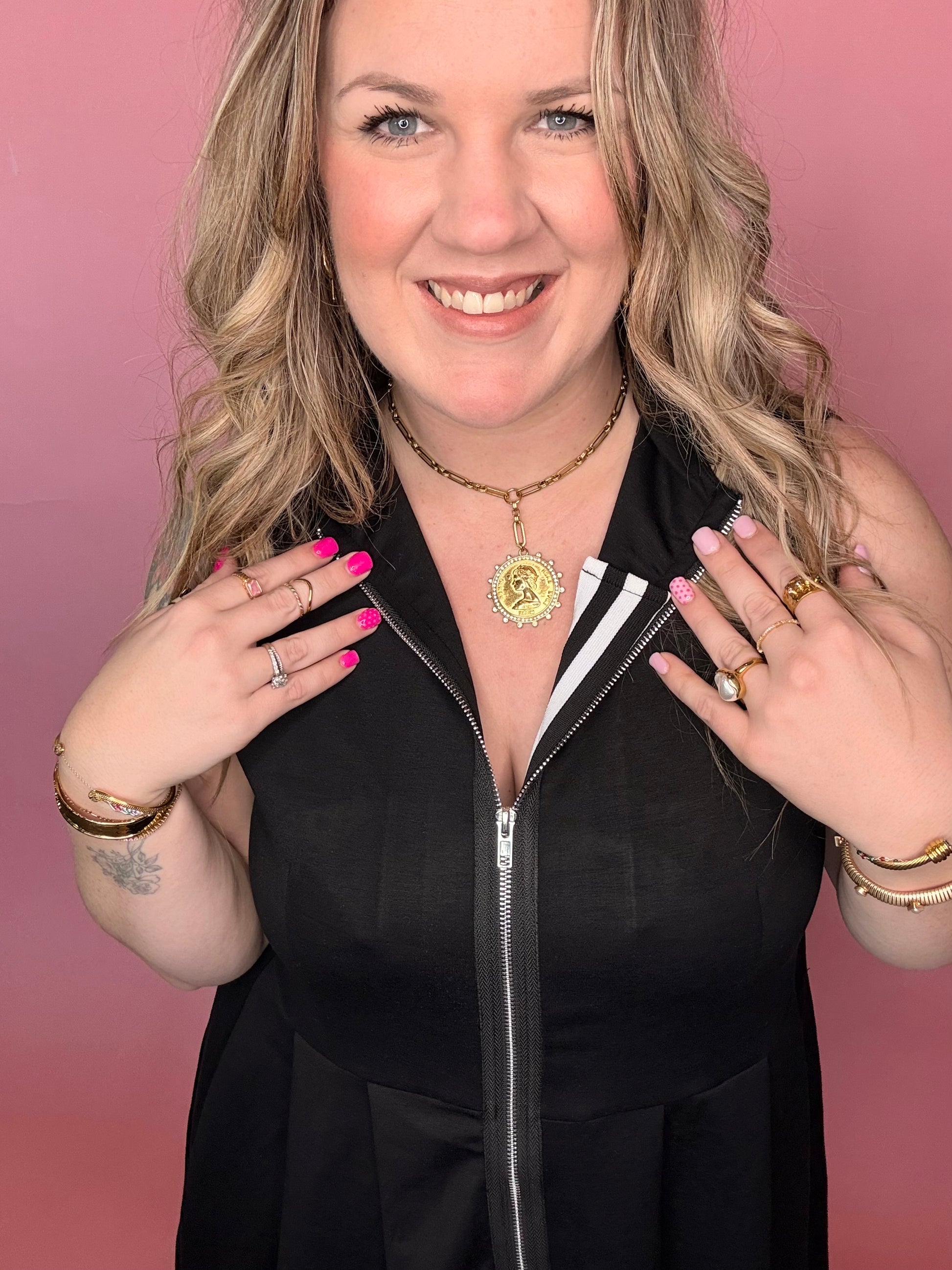Dive into effortless style with this sleek black scuba dress. The zip-down front gives you instant versatility—wear it buttoned up for polished sophistication or unzip for a bold, layered look. Crafted from structured scuba fabric, it holds its shape beautifully while moving with you. Perfect for turning heads at brunch, the office, or a night out. A modern wardrobe essential that's way more fun than it has any right to be.