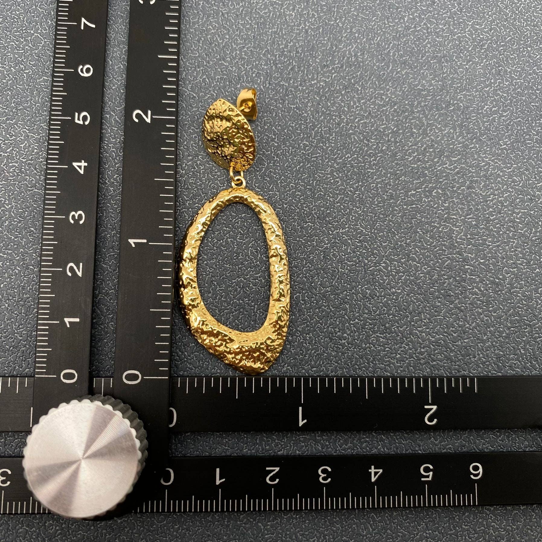 Hammer Textured 18K Golden Geometric Dangle Earrings