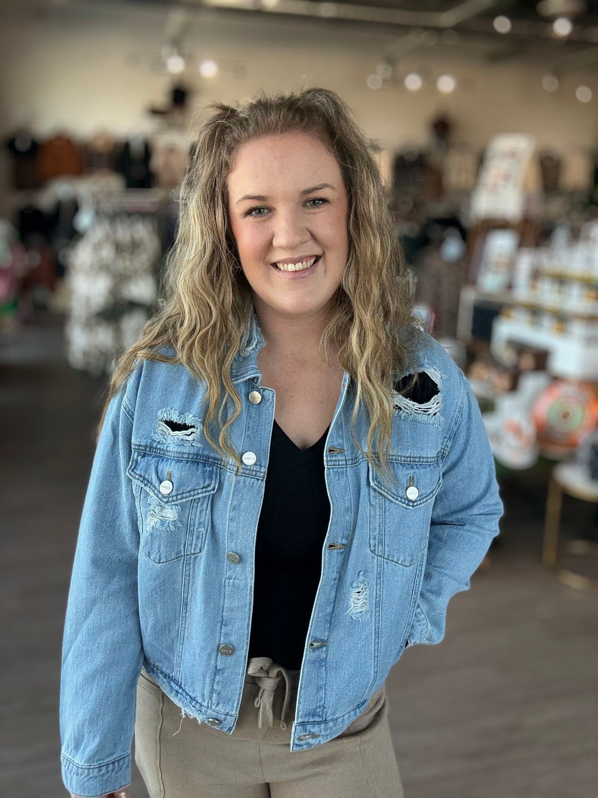 This Heavy Distressed Crop Risen Jacket brings a bold, edgy vibe to your wardrobe with its perfectly worn-in look. The cropped fit adds a flirty twist, making it ideal for layering over your favorite tops. Whether you're hitting the streets or hanging out with friends, this jacket turns heads and keeps your style effortlessly cool.