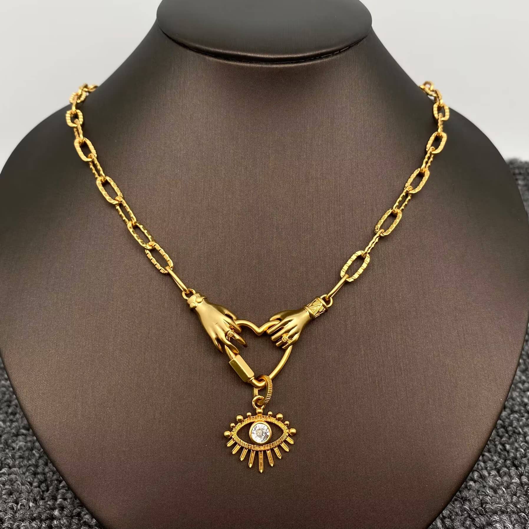 Holding the Evil Eye Heart Charm 18K Gold Plated Necklace