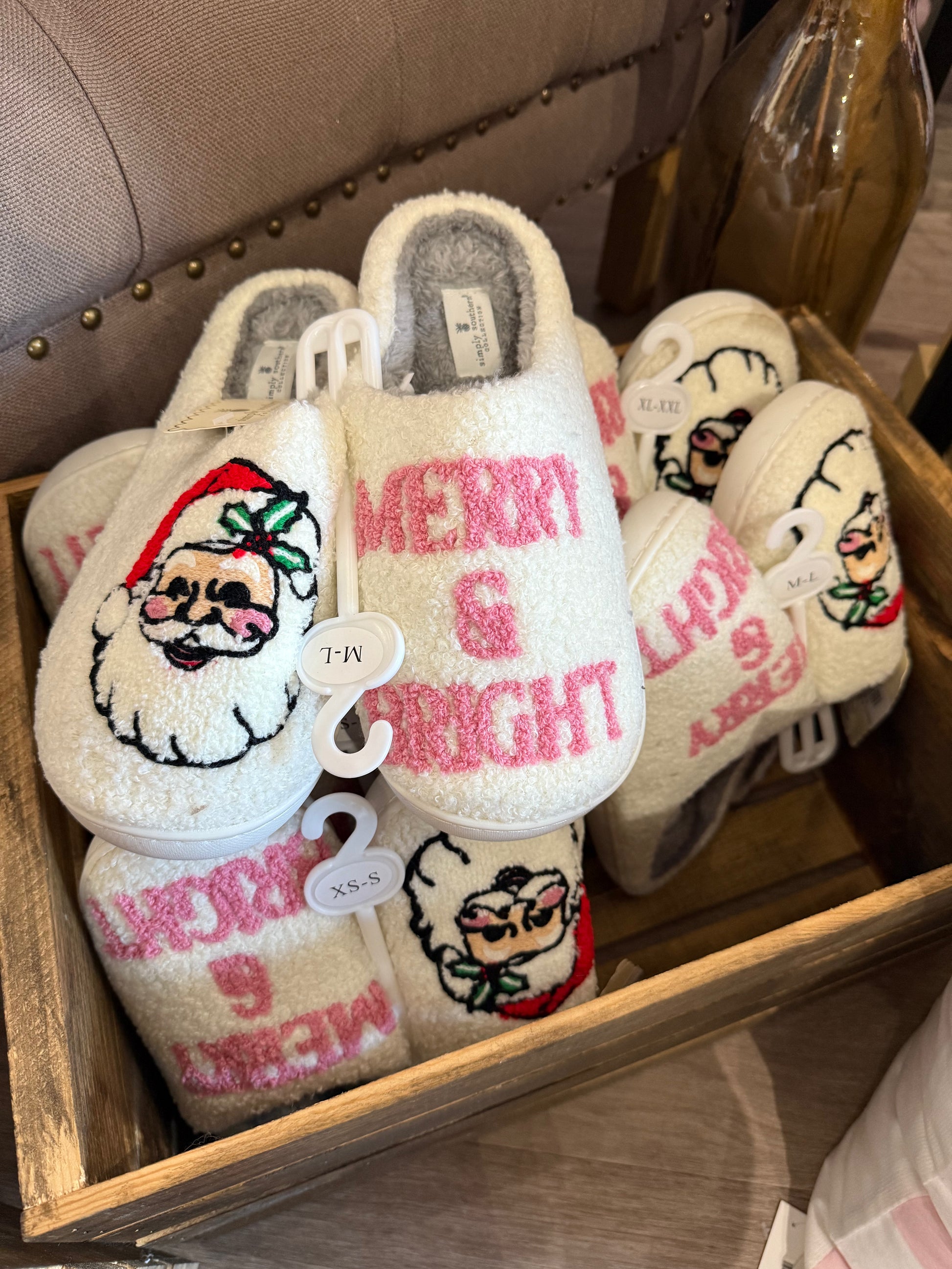 Step into holiday cheer with the Merry & Bright Slipper featuring a jolly Santa design. These cozy slippers keep your feet warm while spreading festive fun all season long. Perfect for lounging by the fire or adding a playful touch to your holiday outfit!