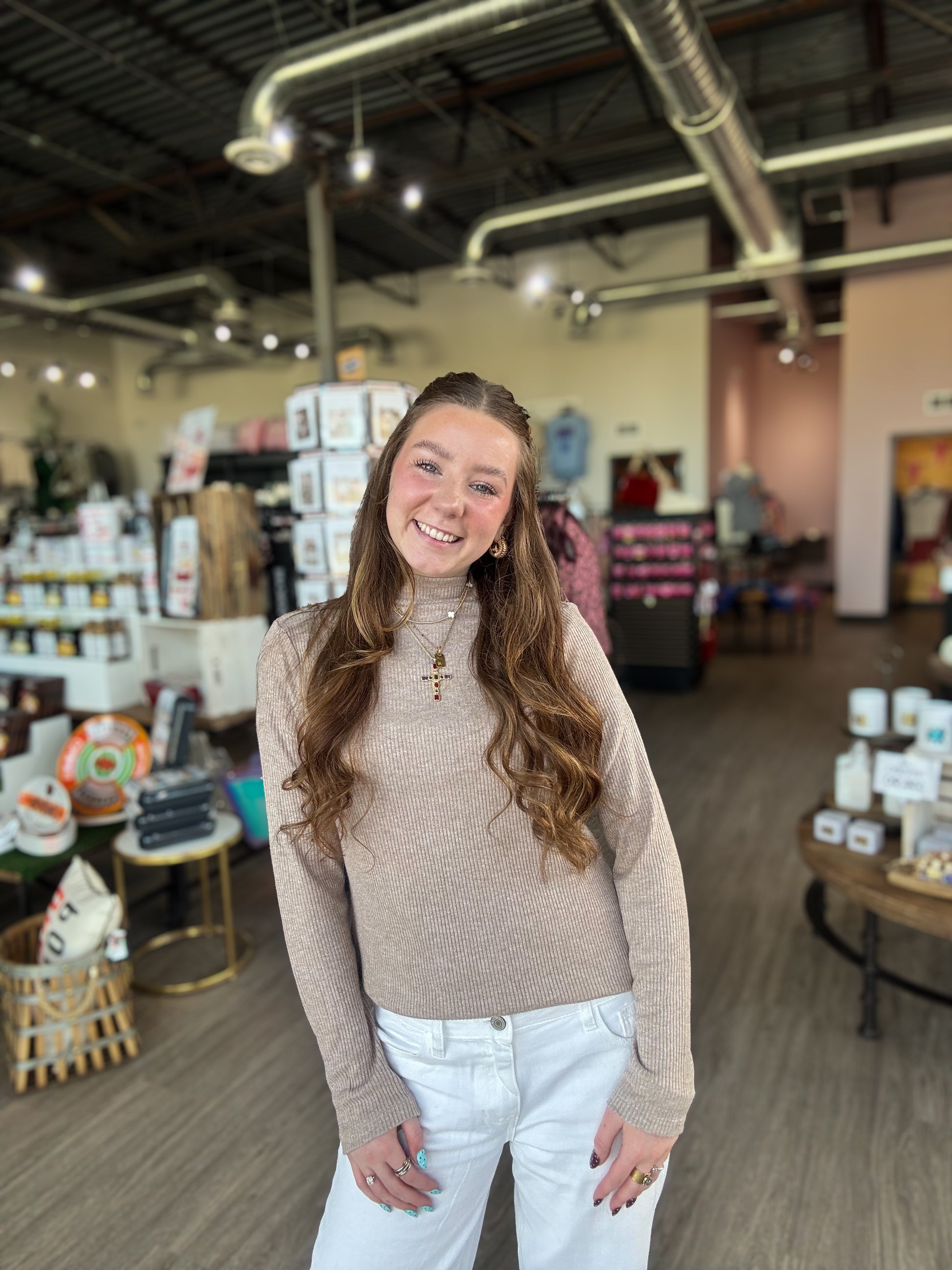 Mocha Ribbed Mock Neck Long Sleeve Top