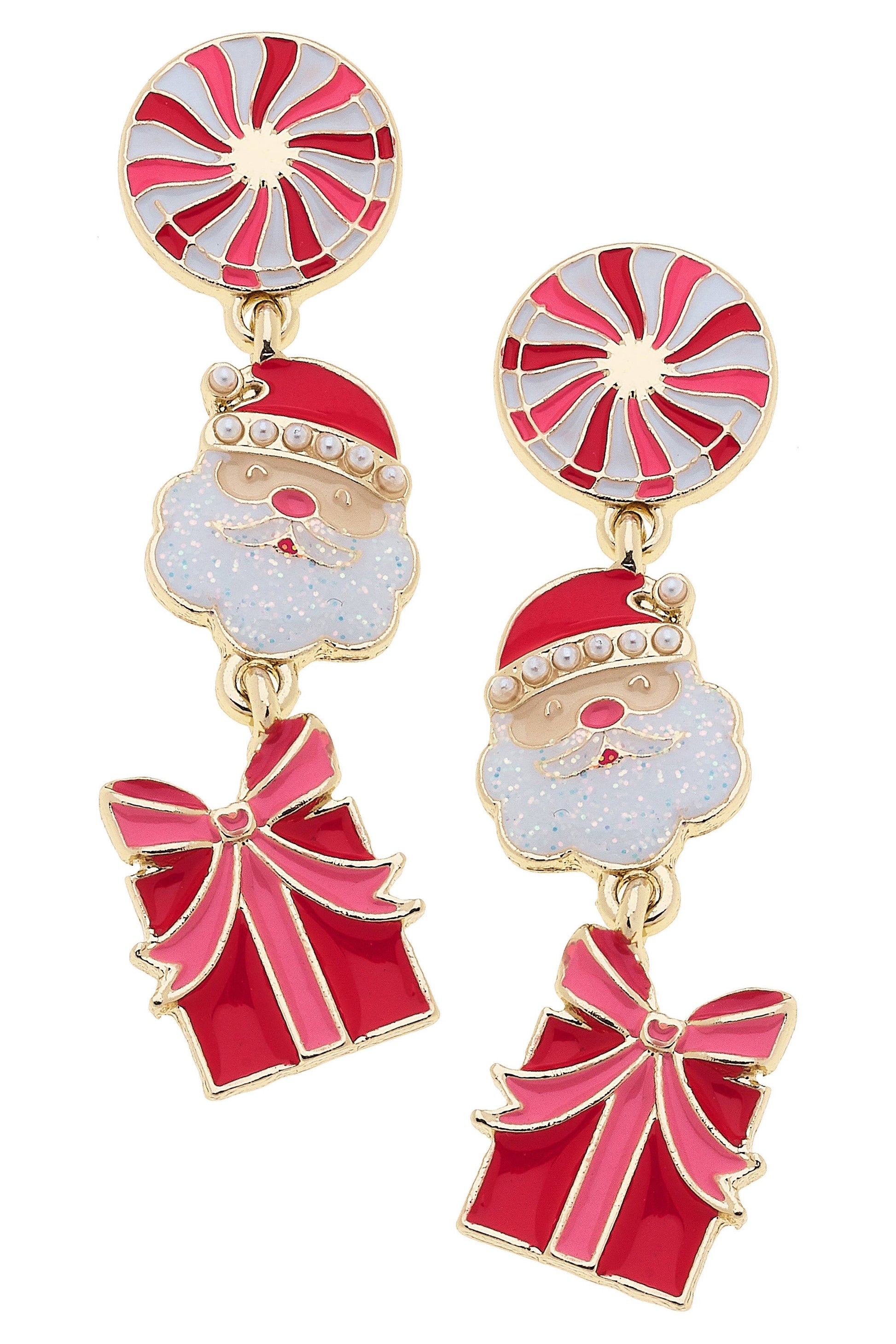 Spread holiday cheer with these playful enamel earrings. Santa’s on his way—and so is the style.